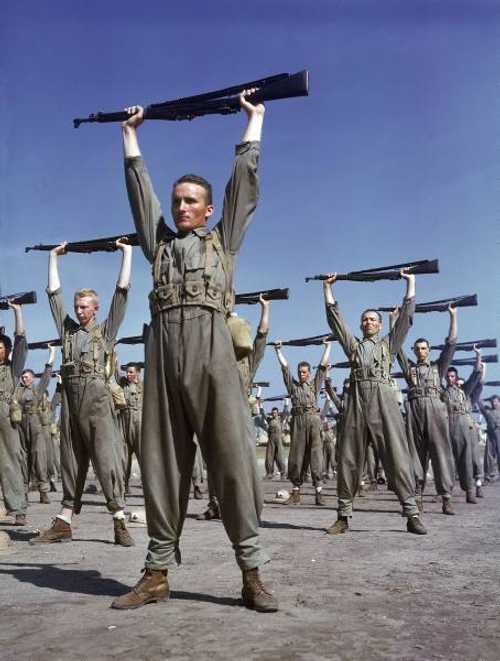 Marines doing exercises in basic training.Parris Island, SC, US,1941(rudeerude)