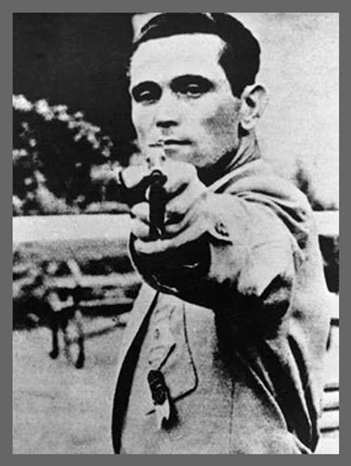 Karoly TAKACS (Taa-kaach) was born at Budapest and joined the Hungarian army during the 1930’s, rising to the rank of sergeant. Soon an expert pistol shooter, he anticipated participation in the 1936 Olympics at Berlin, but current upper-crust inspired Hungarian regulations excluded non-commissioned officers from the team. During 1938, a malfunctioning grenade exploded in his right hand and he lost the use of his shooting right arm. Determined and persistent, Sergeant Takacs went on to relearn handling a pistol with his left hand and arm, surprising everyone by soon winning additional national pistol shooting championships. In fact, at the 1948 London Olympics, he won a gold medal in the 25 meter rapid fire pistol competition, repeating the same accomplishment at Helsinki in 1952. Serving as a national inspiration during the gloomy postwar years, Takacs died in 1976 with the rank of lieutenant colonel.