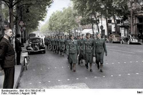 Thanks, Ostuf W. BTW, imi mislabelled this photo. These women are regular "Nachrichtenhelferinnen" (female signal aides of the Wehrmacht)…and the photo was taken in Paris.