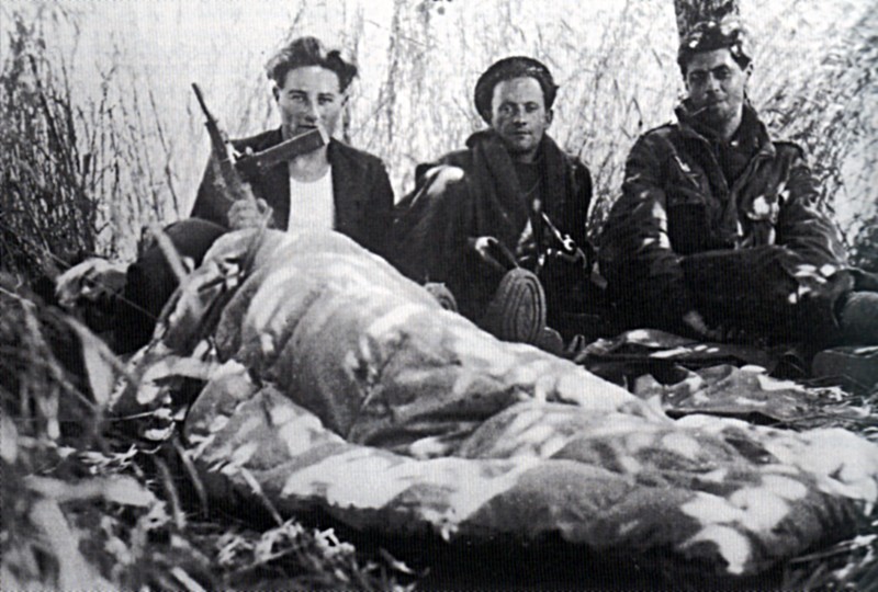 It seems that there’s another weapons leant against the sleeping bag of the wounded (or asleep) man, at left, but i can’t realize which kind of weapon… Judgin’ from their faces, they look english… But they may be Italian Partisan, too. Infact the most part of them were equipped with English or American smg’s.